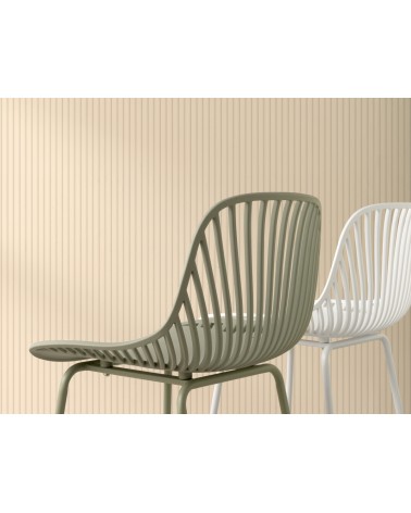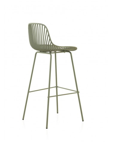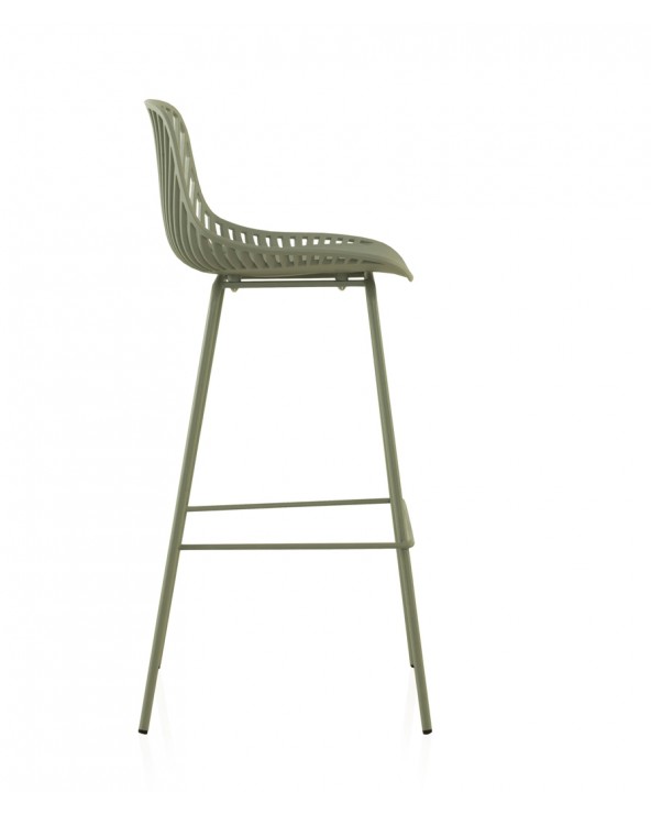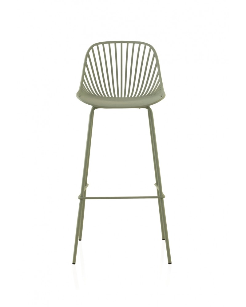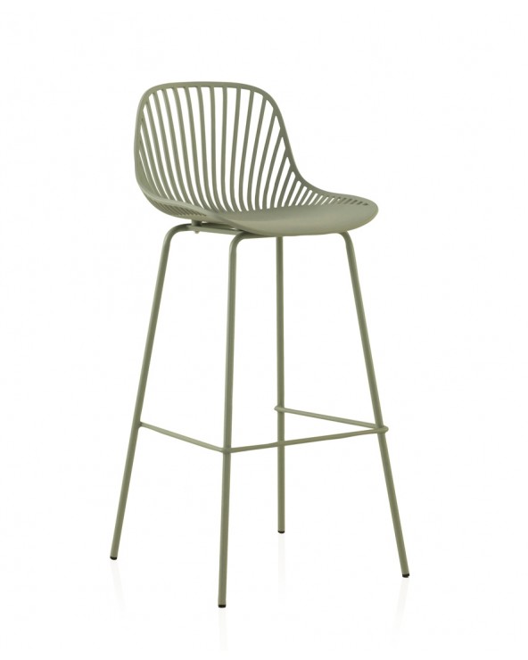 Pack de 2 taburetes fabricados en polipropileno color verde claro con patas metálicas pintadas del mismo tono. Funcionales, atractivos y versátiles ideales para colocar en cualquier rincón de tu hogar. Con su original diseño se convierten en piezas únicas y auténticas que les aportarán un toque moderno y elegante a tus interiores.
