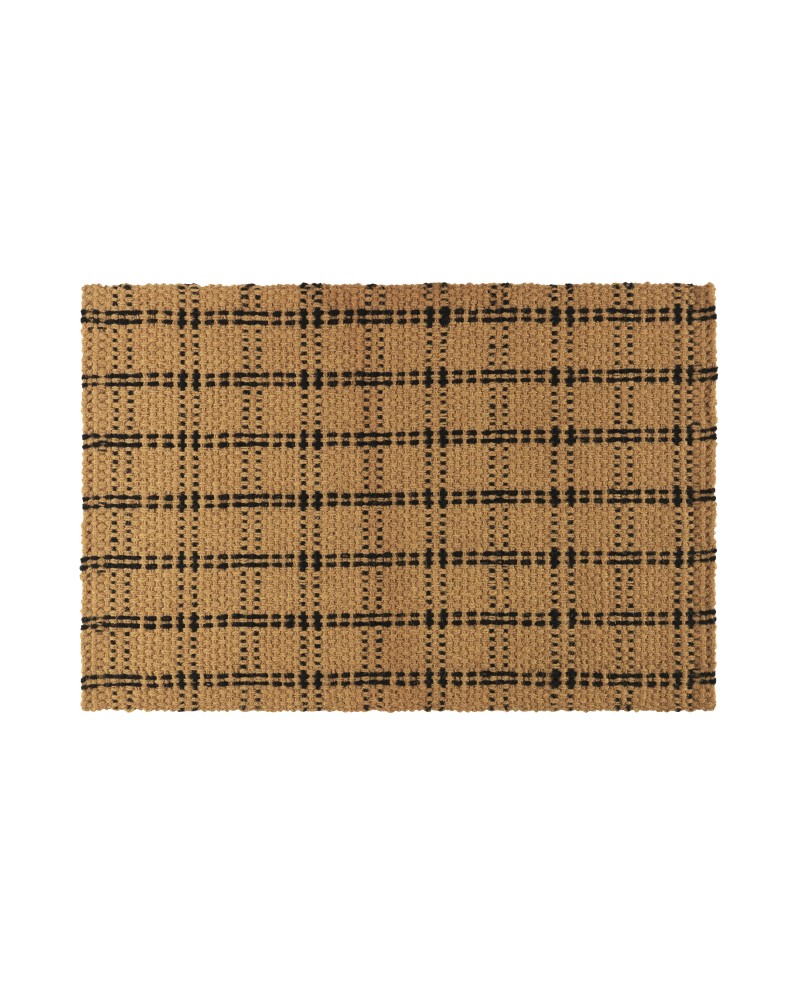 Alfombra tejida con fibra de coco natural con líneas en coco de color negro. Naturaleza en tu suelo.