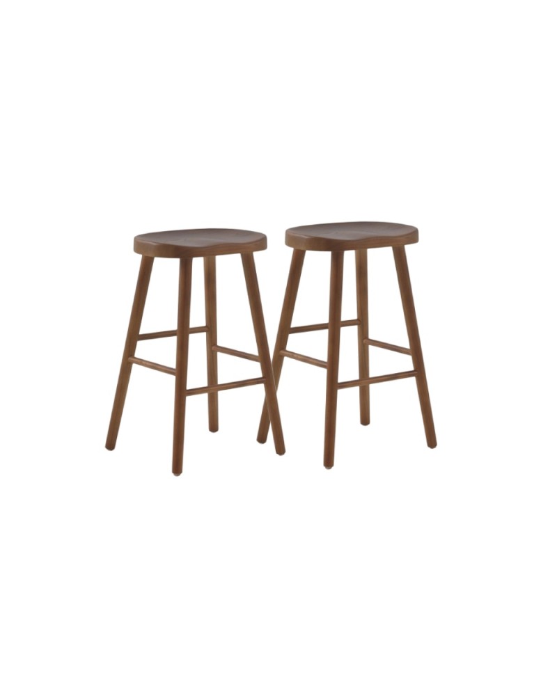 Pack de 2 taburetes de madera de toon natural, fabricados en madera maciza de toon (una variedad de madera de mahogany), con asiento de 4,5 cm de...