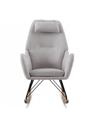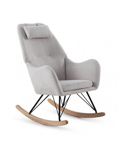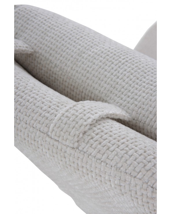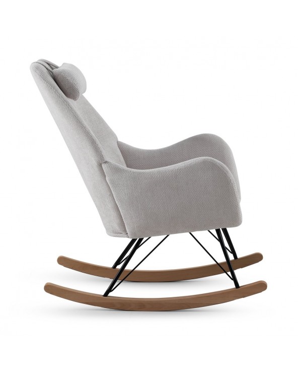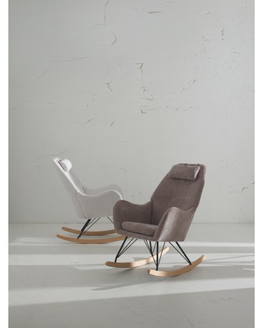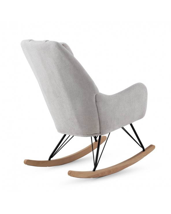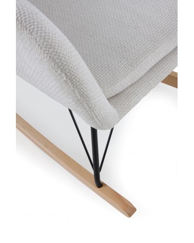 El balancín tapizado en chenilla blanca cuenta con patas metálicas y patín de madera de haya. El tejido tapizado es 00% poliéster chenilla de tacto suave, y los patines son de madera de haya con protección para evitar rayaduras. El asiento es desenfundable mediante cremallera, la altura del asiento de 50 cm, la altura de respaldo de 72 cm y la altura de brazo de 61 cm. Requiere montaje.
