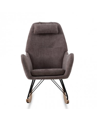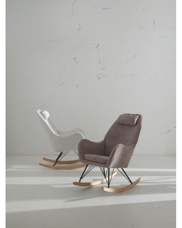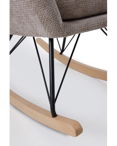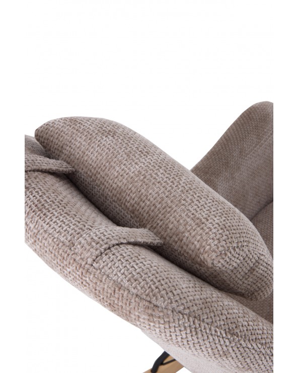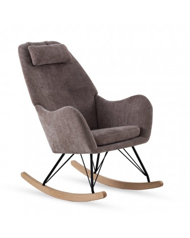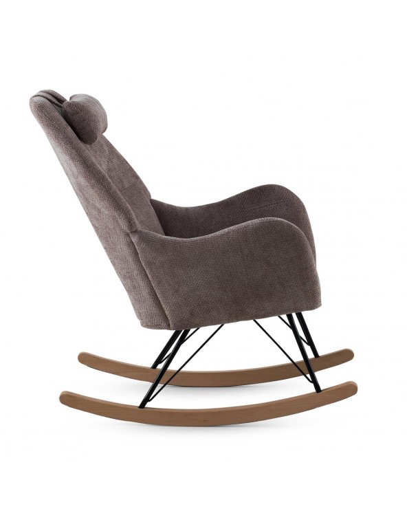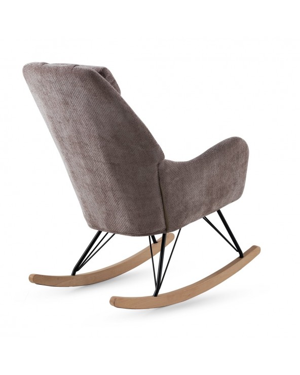 El balancín tapizado en chenilla marrón claro cuenta con patas metálicas y patín de madera de haya. El tejido tapizado es 00% poliéster chenilla de tacto suave, y los patines son de madera de haya con protección para evitar rayaduras. El asiento es desenfundable mediante cremallera, la altura del asiento de 50 cm, la altura de respaldo de 72 cm y la altura de brazo de 61 cm. Requiere montaje.