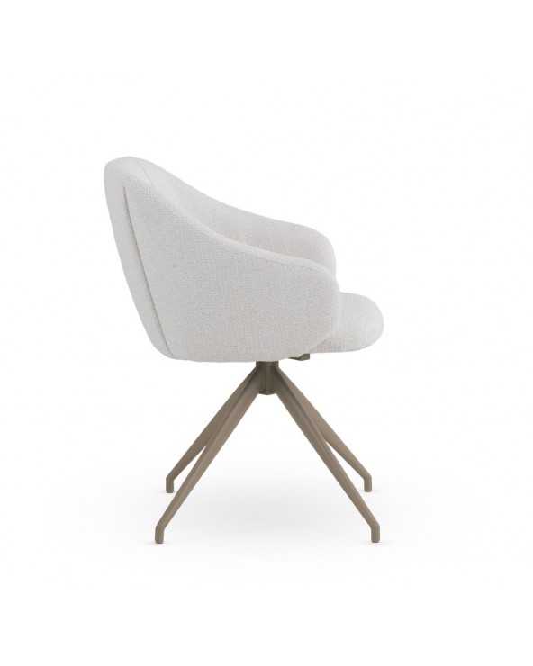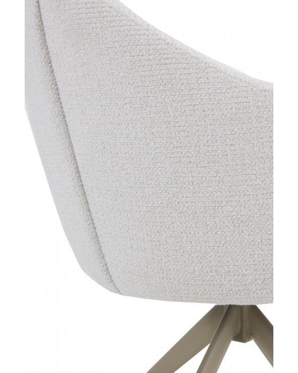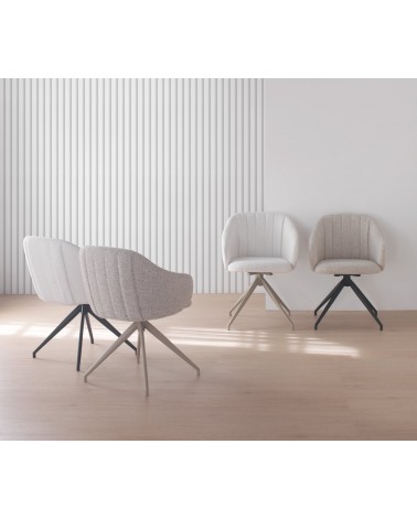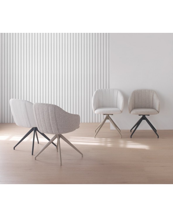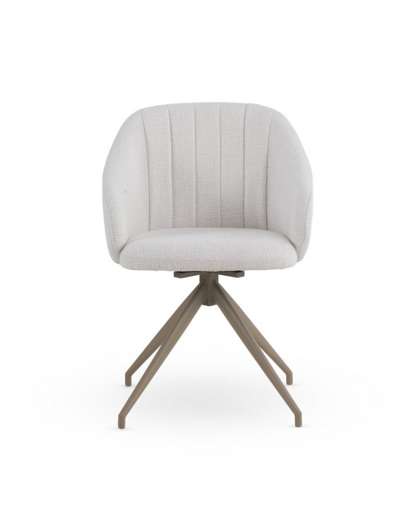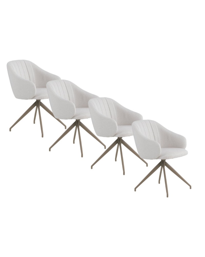 Pack de 4 sillones giratorios de diseño moderno, tapizados en suave chenilla color crema que aporta elegancia y confort a cualquier espacio. Cada silla cuenta con un sistema giratorio con retorno automático a su posición original, ofreciendo practicidad y comodidad en su uso diario. Su estructura y patas de metal en color topo garantizan estabilidad, resistencia y un acabado sofisticado. Con una altura de asiento de 47 cm, apoyabrazos a 62 cm y respaldo de 40 cm, estas sillas están diseñadas para brindar una postura ergonómica. Además, cuentan con un asiento de 45 cm de profundidad y 43 cm de ancho, e incluyen un montaje sencillo de las patas.