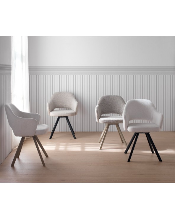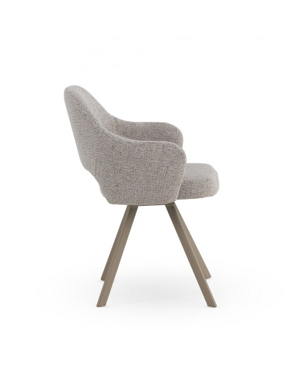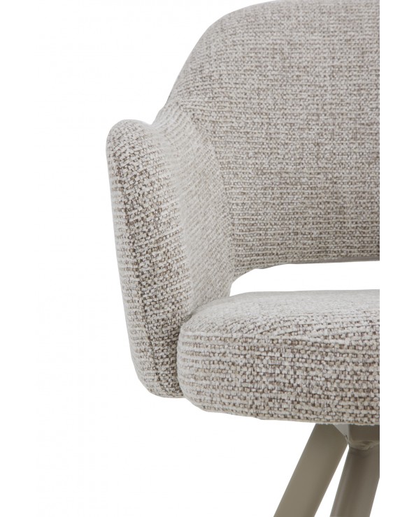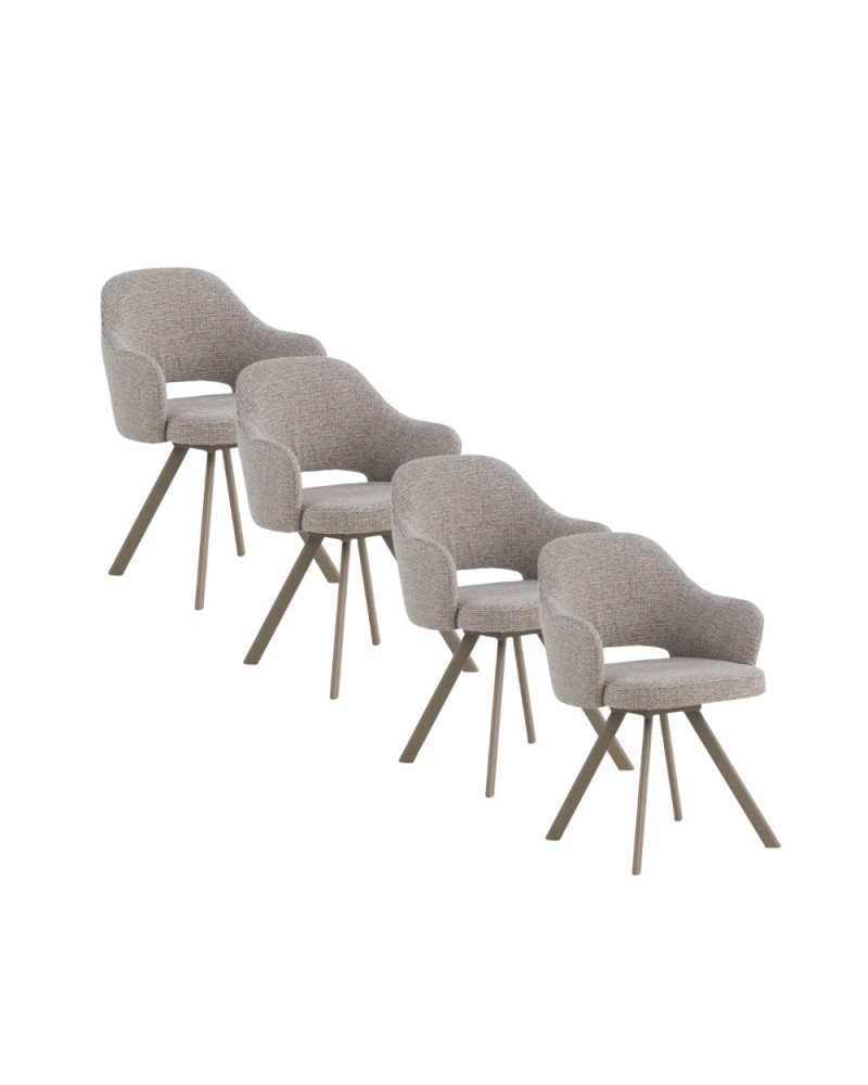 Pack de 4 sillones tapizados en chenilla color marrón claro, un tejido de tacto muy suave que combina elegancia y confort, ideal para comedores o salas modernas. Su estructura y patas de metal en color topo aportan solidez, durabilidad y un estilo contemporáneo. Con una altura de asiento de 49 cm, apoyabrazos a 66 cm y respaldo de 37 cm, ofrecen una excelente ergonomía y comodidad. El asiento, de 46 cm de profundidad y 44 cm de ancho, garantiza una experiencia confortable. Además, requieren un montaje sencillo de las patas, lo que facilita su instalación.