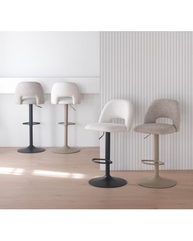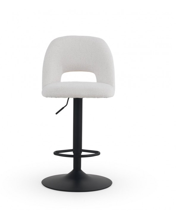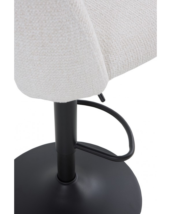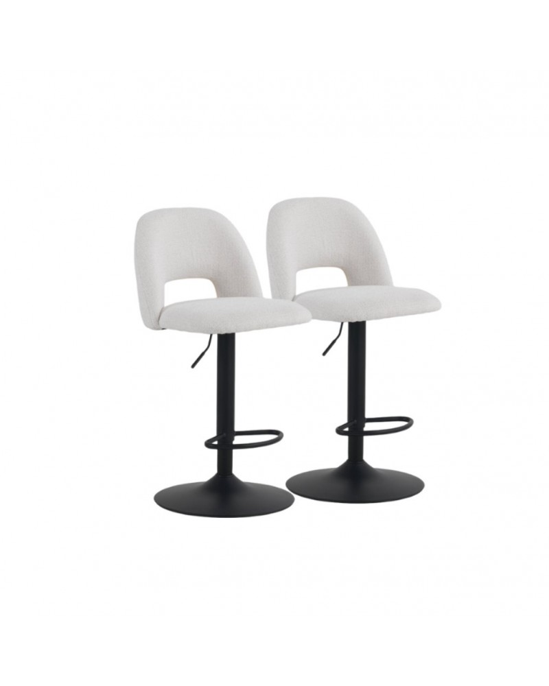 Pack de 2 taburetes regulables en altura, tapizados en elegante chenilla color crema de tacto muy suave, que aporta confort y estilo a cualquier espacio. Su estructura y base redonda de metal en color negro, con un diámetro de 45 cm, ofrecen gran estabilidad y resistencia. Los asientos son ajustables en altura desde 65 hasta 85 cm, adaptándose fácilmente a distintas superficies y necesidades. Con un respaldo de 30 cm de alto y un asiento de 45 cm de ancho y profundidad, brindan una postura cómoda y ergonómica. Además, cuentan con reposapiés situado a 23 cm del suelo y requieren un montaje sencillo de las patas.