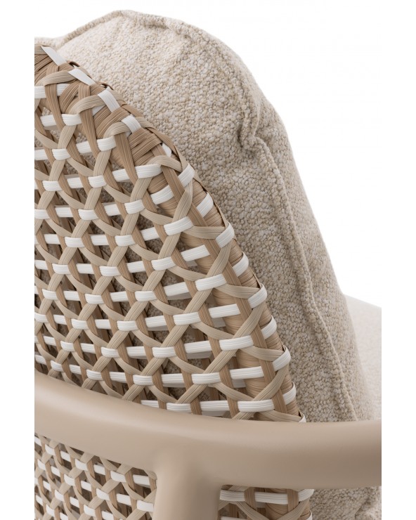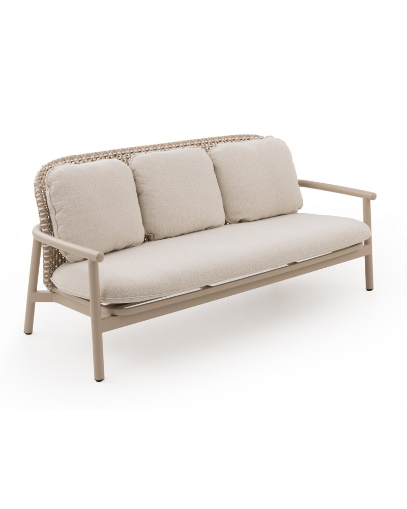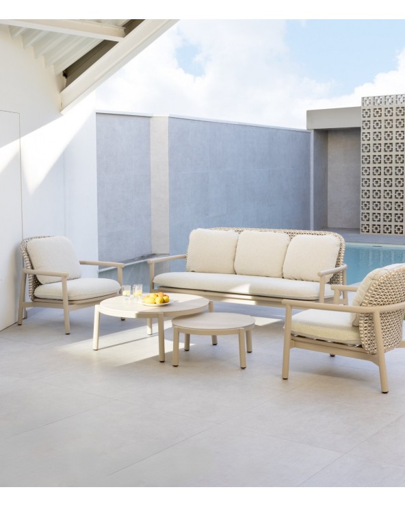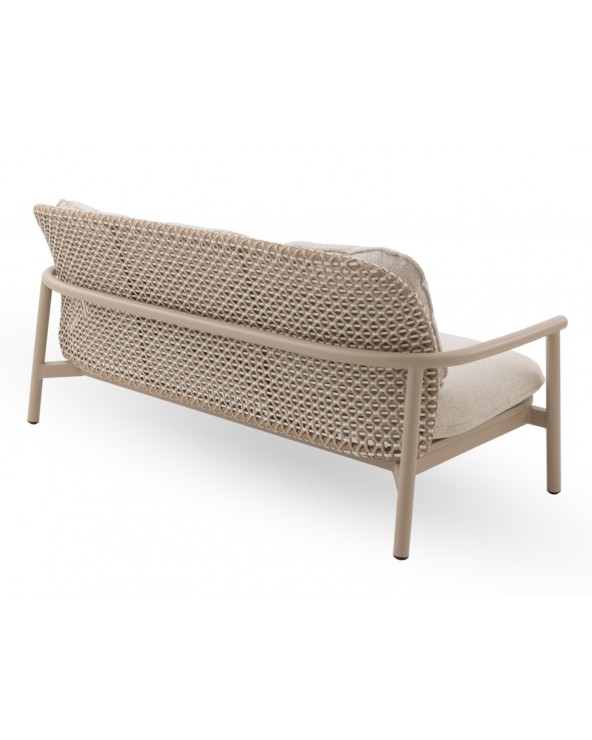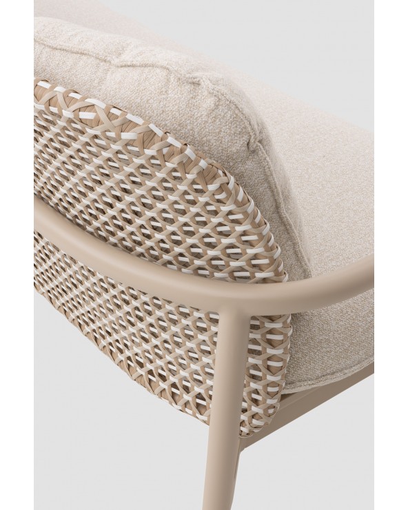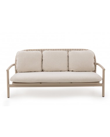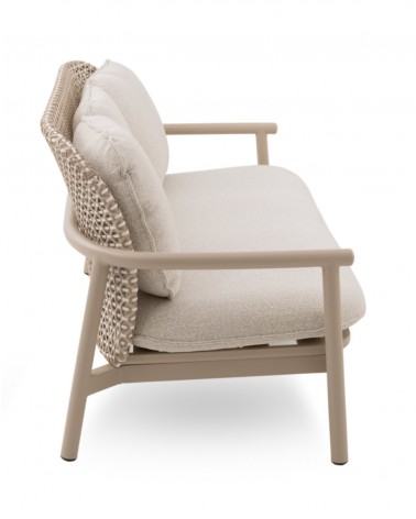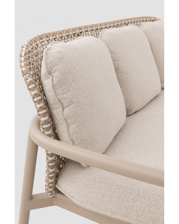 El sofá bicolor de aluminio y fibra sintética de la colección Dualis combina modernidad y confort para exteriores, con formas redondeadas que aportan suavidad y elegancia. Su respaldo en fibra sintética plana bicolor y el asiento de láminas horizontales de aluminio ofrecen resistencia y durabilidad. Incluye tres cojines desenfundables de olefina (396 g/m²), resistente a la decoloración, repelente al agua y de fácil secado; el cojín del asiento, de una sola pieza y 12 cm de espesor, garantiza comodidad. Con una altura de respaldo de 54 cm, asiento de 41 cm y apoyabrazos de 57 cm, no requiere montaje y está listo para usar, aportando estilo y funcionalidad a espacios exteriores.