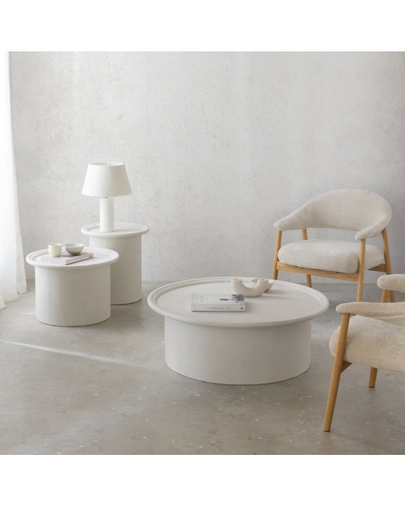La table basse ronde de 48 cm de diamètre, de couleur ciment blanc, présente un design moderne et compact, idéal pour compléter n'importe quel espace. Sa structure en polyrésine, recouverte de microciment blanc, offre durabilité, résistance et une finition élégante facile à entretenir. Le plateau a une épaisseur de 3 cm, ce qui lui confère stabilité et légèreté visuelle. De plus, la table ne nécessite aucun montage, ce qui permet une utilisation immédiate et pratique dès le premier instant.