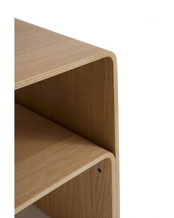 Table d'appoint en contreplaqué avec finition chêne, parfaite pour apporter une touche chaleureuse et naturelle à n'importe quelle pièce. Son design aux formes arrondies allie élégance et douceur visuelle, s'adaptant facilement aux salons, chambres ou espaces de lecture. Il comprend une étagère ouverte à 27 cm du sol, idéale pour ranger des livres, des magazines ou des objets décoratifs et garder tout à portée de main. De plus, il est livré déjà monté, prêt à être utilisé dès réception, sans installation nécessaire.