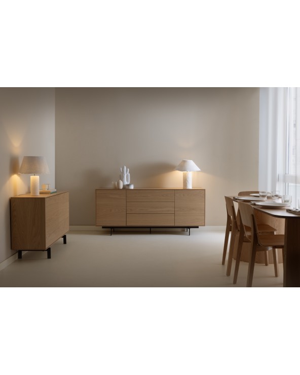 Ce buffet en chêne naturel au design intemporel, mesurant 120 x 39,5 x 76 cm, se distingue par son allure harmonieuse et sa structure consistante de 42 kg. Son agencement astucieux propose deux portes avec système d'ouverture par pression et fermeture douce, intégrées dans un meuble de grand caractère garantissant une stabilité ferme. Reposant sur des pieds métalliques élancés de 15 cm, l'article est livré quasi assemblé dans un colis unique de 47 kg, alliant une esthétique avant-gardiste à une expédition fluide pour sublimer votre intérieur sans attendre.