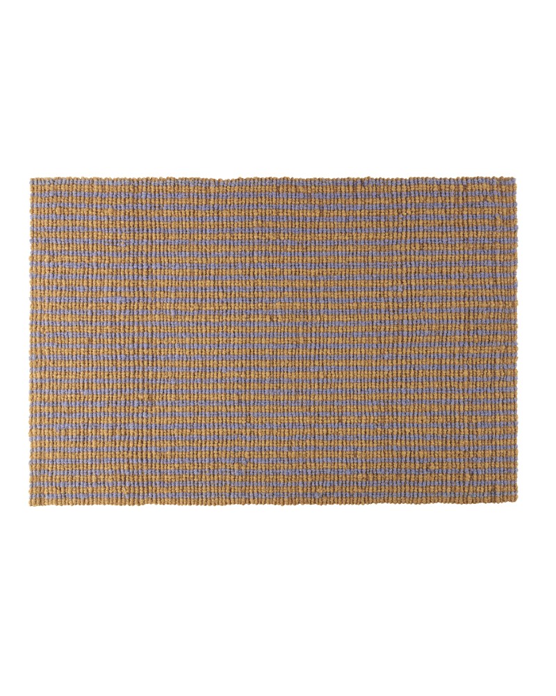 Tapis tissé avec de la fibre de coco naturelle avec des lignes de coco bleu. Nature sur votre sol.