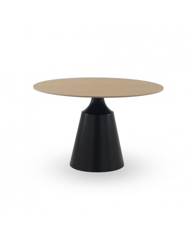 La table de salle à manger ronde a un diamètre de 120 cm, idéal pour les espaces accueillants et fonctionnels. Sa surface est en céramique de 1 cm d'épaisseur, avec une finition mate qui lui confère un aspect élégant et moderne, imitant le bois de frêne. La base métallique noire, de forme conique avec un diamètre de 50 cm, offre une grande stabilité et un design contemporain qui s'harmonise avec différents styles de décoration. De plus, la structure est facile à monter, ce qui facilite son installation et son utilisation à la maison.