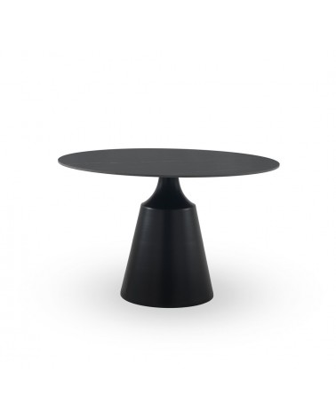 La table de salle à manger ronde d'un diamètre de 120 cm présente un design élégant et fonctionnel, parfait pour les espaces modernes. Son plateau en céramique noire de 1 cm d'épaisseur, avec une finition mate, apporte durabilité et style contemporain, tandis que la base conique en métal noir offre stabilité et touche sophistiquée. La base a un diamètre de 50 cm, complétant harmonieusement la taille du plateau. De plus, son montage est simple, ce qui facilite son installation et son utilisation immédiate dans n'importe quelle salle à manger.
