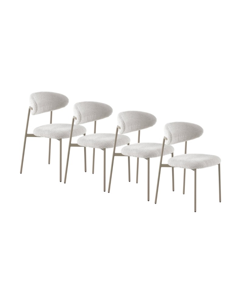 Ce lot comprend quatre chaises rembourrées en chenille blanche au design moderne et aux pieds métalliques couleur taupe, idéales pour les salles à manger ou les espaces d'étude. Le tissu chenille est doux au toucher et 100 % polyester, alliant confort et durabilité. Chaque chaise a une hauteur d'assise de 45 cm et un dossier de 40 cm, avec une structure et des pieds en tube rond de couleur taupe qui apportent stabilité et une finition contemporaine. Elle nécessite un assemblage simple pour une installation rapide.