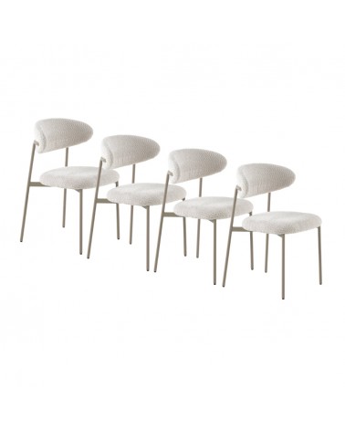 Ce lot comprend quatre chaises rembourrées en chenille de couleur crème douce, au design moderne et aux pieds métalliques de couleur noire, idéales pour les salles à manger ou les espaces d'étude. Le tissu chenille est doux au toucher et composé à 100 % de polyester, alliant confort et durabilité. Chaque chaise a une hauteur d'assise de 45 cm et un dossier de 40 cm, avec une structure et des pieds tubulaires de couleur taupe qui apportent stabilité et une finition contemporaine. Elle nécessite un assemblage simple pour une installation rapide.