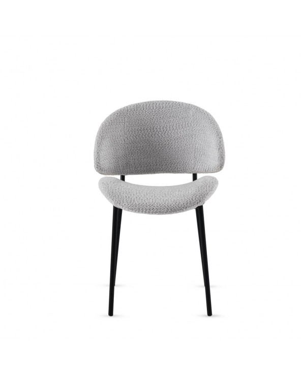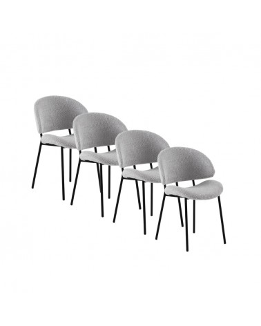 Lot de 4 chaises rembourrées en chenille gris clair avec pieds en tube rond de couleur taupe. Tissu chenille doux 100 % polyester pour un toucher agréable et un aspect élégant. Hauteur d'assise 45 cm et hauteur de dossier 40 cm, avec structure et pieds en tube métallique rond de couleur taupe qui apportent stabilité et une touche moderne. Nécessite un montage simple pour être prêt en peu de temps.
