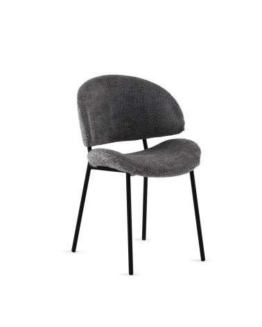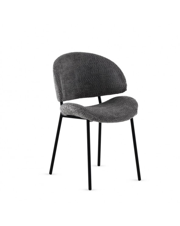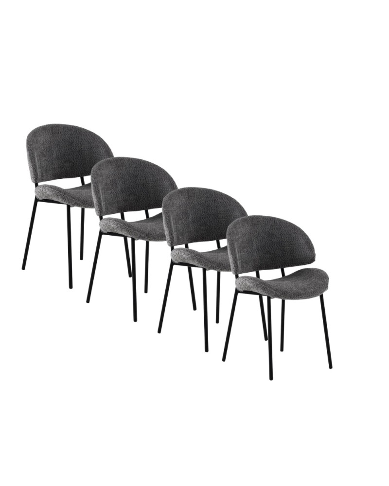 Lot de 4 chaises rembourrées en chenille gris foncé avec pieds tubulaires ronds de couleur taupe. Tissu chenille doux 100 % polyester pour un toucher agréable et un aspect élégant. Hauteur d'assise 45 cm et hauteur de dossier 40 cm, avec structure et pieds tubulaires ronds en métal de couleur taupe qui apportent stabilité et une touche moderne. Nécessite un assemblage simple pour être prêt en peu de temps.