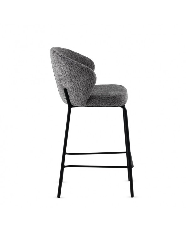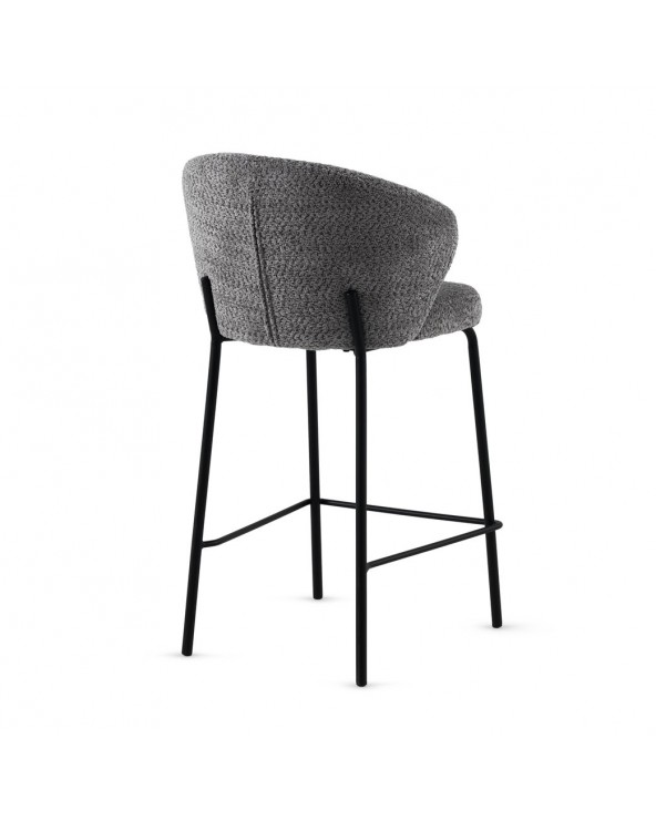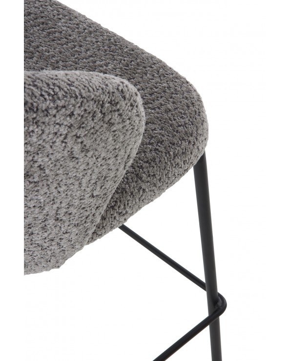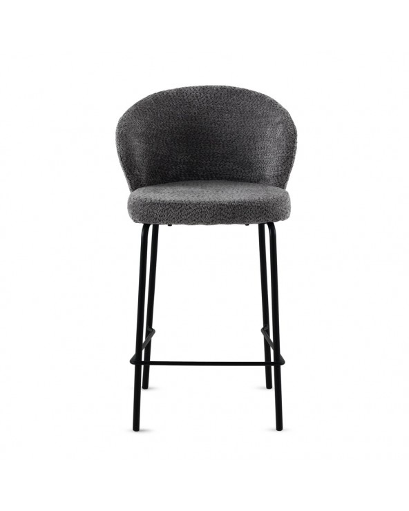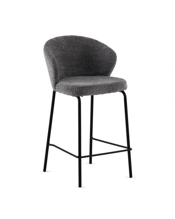 Lot de 2 tabourets rembourrés en chenille gris foncé au toucher doux 100 % polyester, avec structure et pieds en tube métallique rond de couleur taupe et hauteur d'assise de 65 cm ; ils sont dotés d'un dossier de 28 cm et d'un repose-pieds de 20 cm, offrant un ensemble moderne et élégant. Ils nécessitent un assemblage simple et sont parfaits pour compléter les intérieurs contemporains avec une touche lumineuse grâce à leur revêtement doux et leurs pieds métallisés.