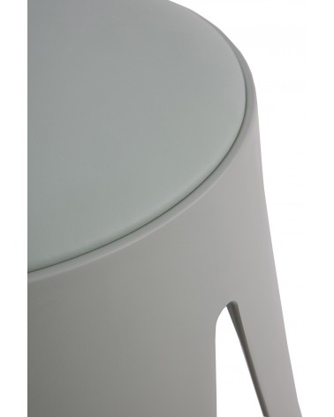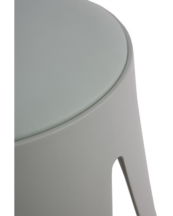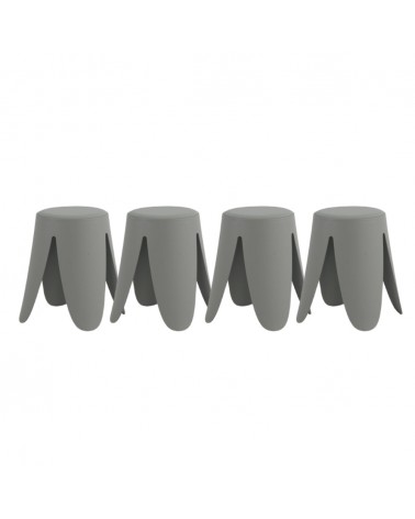 Lot de 4 tabourets bas en polypropylène de couleur grise, avec assise ronde de 30 cm de diamètre et coussin fixe tapissé d'un simili cuir doux au toucher, qui apporte confort et élégance. Fabriqués avec une structure en polypropylène très résistante, ils offrent durabilité et stabilité. Leur design pratique et fonctionnel est livré entièrement monté, prêt à l'emploi.