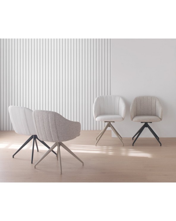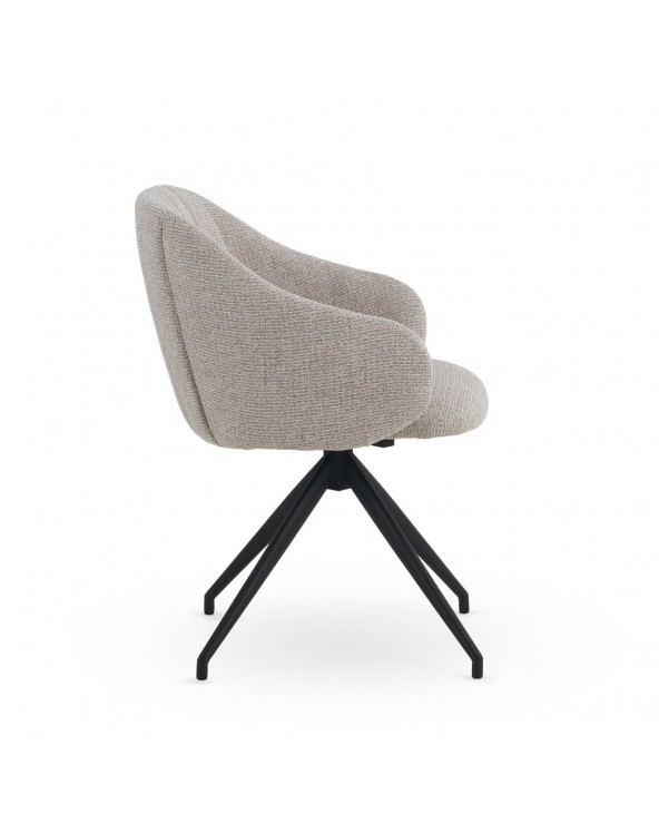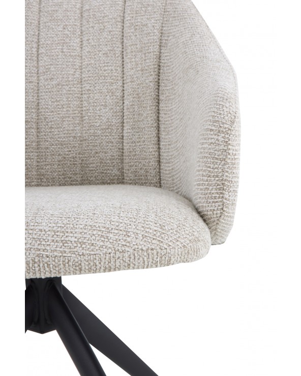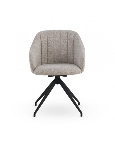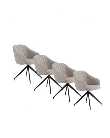 Lot de 4 fauteuils pivotants au design moderne, tapissés d'un tissu chenille beige doux qui apporte élégance et confort à n'importe quel espace. Chaque chaise est équipée d'un système pivotant avec retour automatique à sa position d'origine, offrant praticité et confort dans son utilisation quotidienne. Sa structure et ses pieds en métal noir garantissent stabilité, résistance et une finition sophistiquée. Avec une hauteur d'assise de 47 cm, des accoudoirs à 62 cm et un dossier de 40 cm, ces fauteuils sont conçus pour offrir une posture ergonomique. De plus, ils disposent d'une assise de 45 cm de profondeur et 43 cm de largeur, et comprennent un montage simple des pieds.