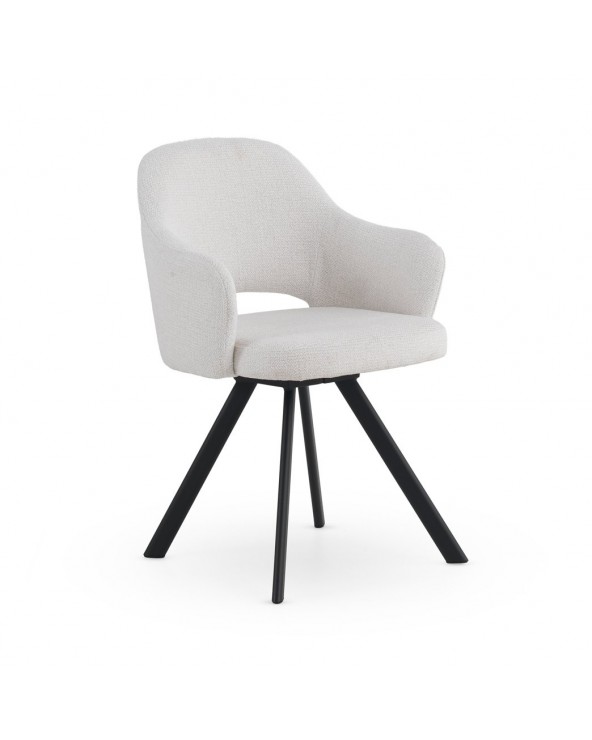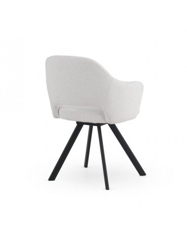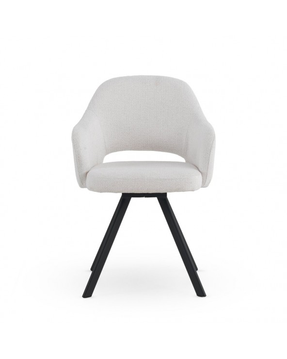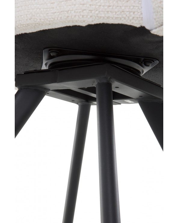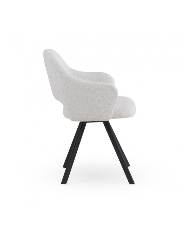 Lot de 4 fauteuils tapissés en chenille couleur crème, un tissu très doux au toucher qui allie élégance et confort, idéal pour les salles à manger ou les salons modernes. Leur structure et leurs pieds en métal noir leur confèrent solidité, durabilité et un style contemporain. Avec une hauteur d'assise de 49 cm, des accoudoirs à 66 cm et un dossier de 37 cm, ils offrent une excellente ergonomie et un grand confort. L'assise, d'une profondeur de 46 cm et d'une largeur de 44 cm, garantit un confort optimal. De plus, le montage des pieds est simple, ce qui facilite leur installation.