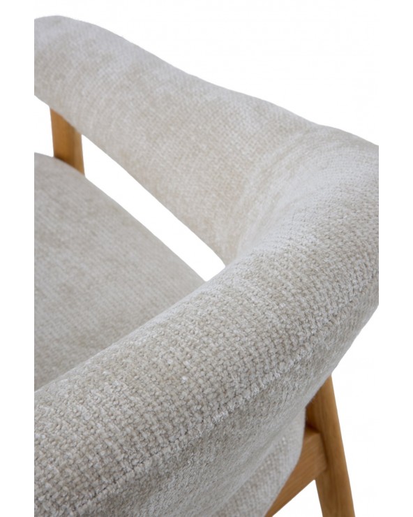 Le fauteuil en chêne naturel recouvert de tissu chenille blanc allie élégance, confort et durabilité. Sa structure solide en chêne offre une base résistante et de haute qualité, tandis que le revêtement en chenille douce apporte une texture agréable au toucher et un aspect sophistiqué. L'assise, d'une hauteur de 45 cm et d'une épaisseur de mousse de 10 cm, garantit un confort optimal. Avec une largeur et une profondeur de 60 cm, il offre un espace généreux pour se détendre. Le dossier, d'une hauteur de 38 cm à partir de l'assise, et les accoudoirs, situés à 60 cm du sol, sont conçus pour favoriser une posture ergonomique. De plus, le fauteuil nécessite un simple montage des pieds, ce qui facilite son installation et son utilisation immédiate.