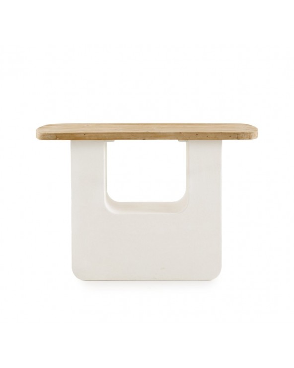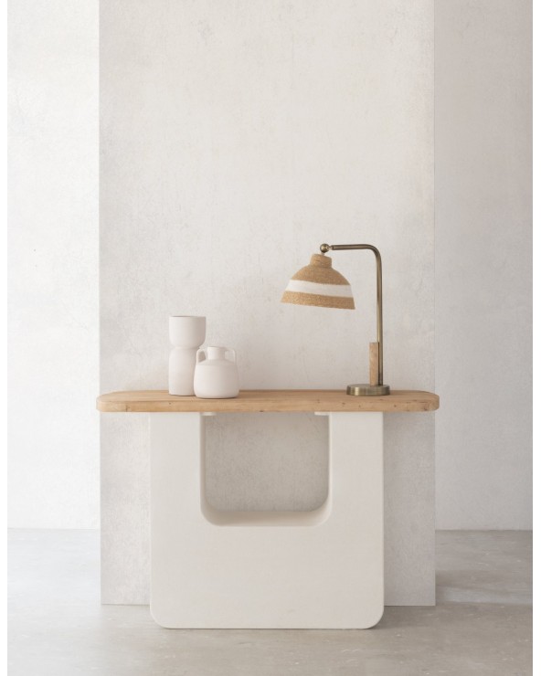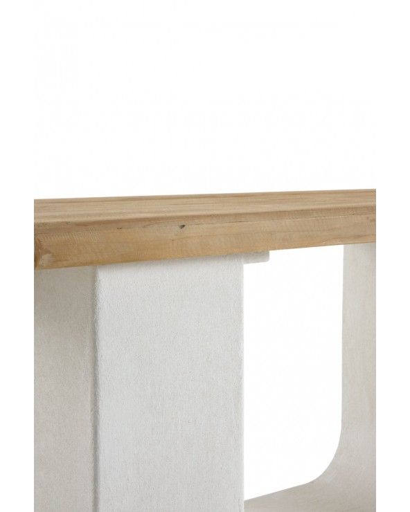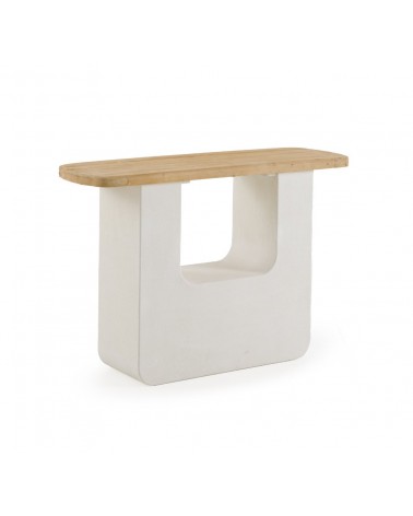 Cette console allie un design moderne et élégant grâce à son corps en poly-résine recouvert de microciment blanc, avec une forme ovale aux lignes arrondies qui apporte une douceur visuelle à l'espace. Son plateau supérieur, en bois de sapin d'une épaisseur de 4 cm, ajoute de la chaleur et un contraste naturel. Elle comprend un espace central de 44 × 40 cm qui apporte légèreté et fonctionnalité au design, et ne nécessite aucun montage, ce qui facilite son installation immédiate.