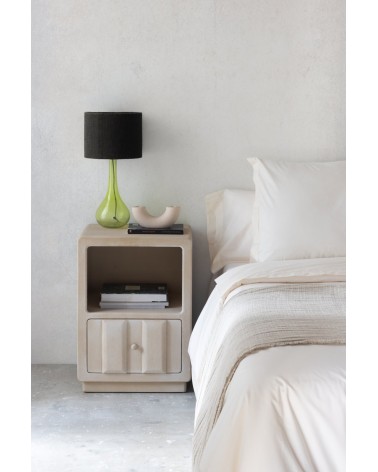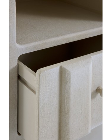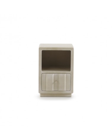 Cette table de chevet avec tiroir, fabriquée en poly-résine et recouverte de microciment couleur sable, se distingue par son design rectangulaire aux bords arrondis qui lui confèrent un style moderne et accueillant. Elle dispose d'un espace supérieur de 45 × 37 × 32 cm, idéal pour les objets d'usage quotidien, et d'un tiroir inférieur de 38 × 28 × 20 cm, équipé de poignées et de glissières en bois qui ajoutent une touche naturelle. Sa structure solide ne nécessite aucun assemblage, ce qui permet de l'utiliser immédiatement dans n'importe quel espace.