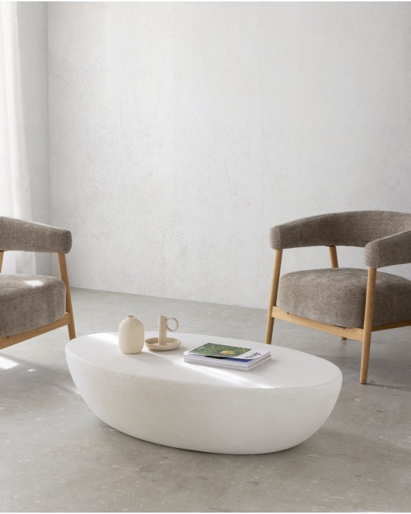 La table basse ovale de 120 x 70 cm de couleur ciment blanc allie un design élégant à une fonctionnalité pratique. Sa structure en polyrésine, recouverte de microciment blanc, offre durabilité, résistance et une finition sophistiquée facile à entretenir. Grâce à son design ovale, elle apporte fluidité et ampleur visuelle à n'importe quel espace. De plus, la table ne nécessite aucun montage, ce qui permet une utilisation immédiate dès la première utilisation.