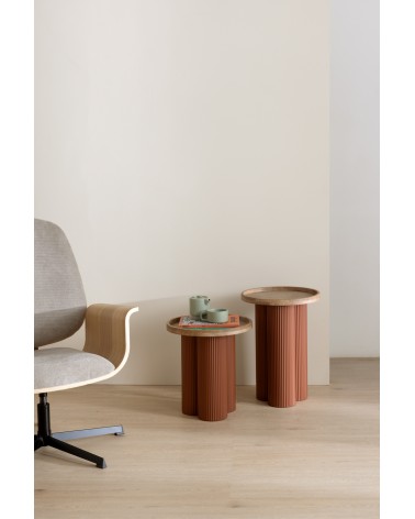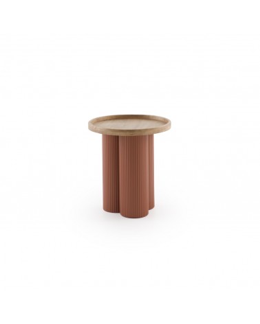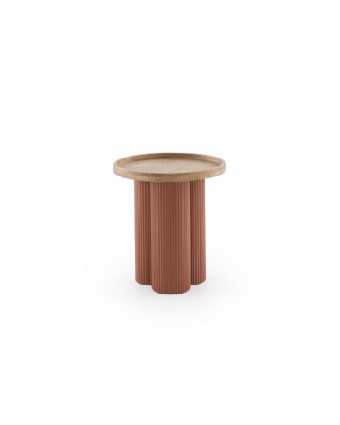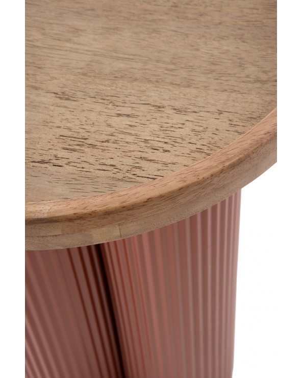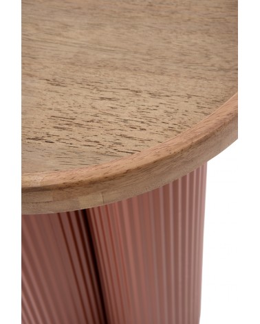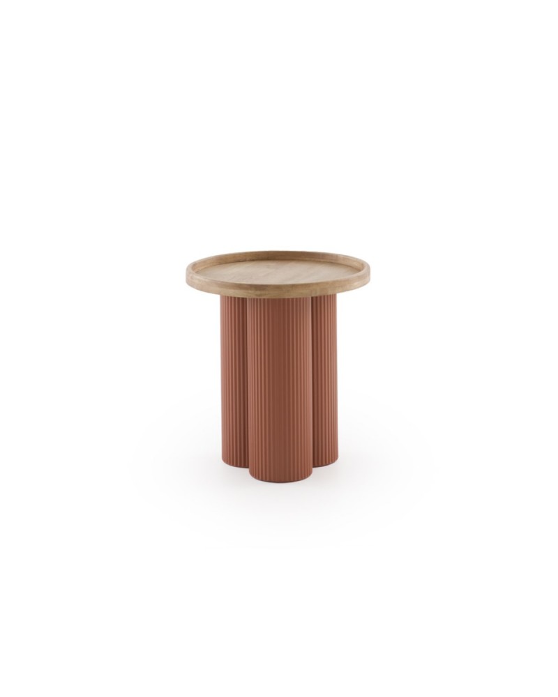 La fusion parfaite entre le bois d'hévéa naturel et le métal cannelé définit cette élégante table basse ronde avec un plateau de type plateau. Sa structure inférieure se compose de trois corps cylindriques unis en un seul piédestal avec une finition de couleur marron doux, apportant de la distinction à la maison. Avec des dimensions de 40 cm de longueur, 40 cm de largeur, 44 cm de hauteur et un poids net de 2,50 kg, cette pièce de haute qualité ne nécessite aucun montage et est idéale pour les environnements recherchant équilibre et esthétique avant-gardiste.