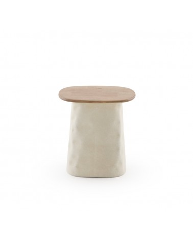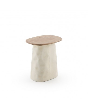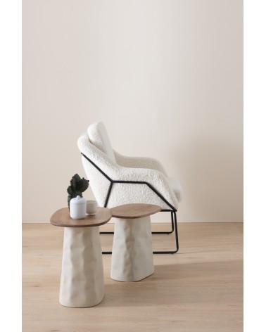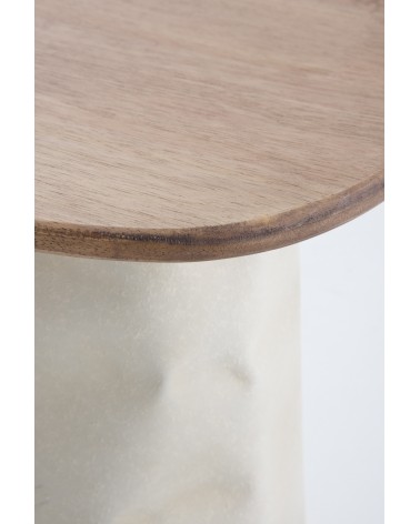 L'harmonie entre le plateau en bois d'hévéa de couleur naturelle et son pied métallique sophistiqué en couleur ivoire définit cette table basse de haute qualité. Avec une forme rectangulaire fonctionnelle aux coins adoucis et arrondis, la pièce se distingue par un plateau de 1,5 cm d'épaisseur et une base avec des détails décoratifs cannelés qui apportent de la distinction à la maison. Avec des dimensions de 40 cm de longueur, 30 cm de largeur, 41 cm de hauteur et un poids net de 2,50 kg, ce meuble est livré monté et est idéal pour les environnements recherchant équilibre et esthétique avant-gardiste.