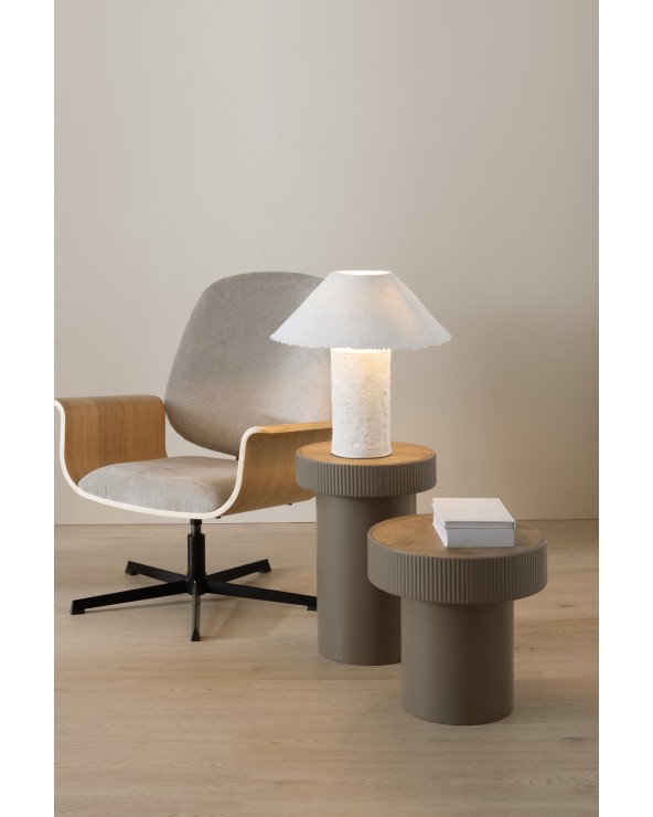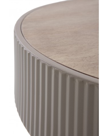 Définie par un design intemporel aux lignes pures, cette table basse ronde présente un plateau en bois d'hévéa de couleur naturelle sur un robuste pied métallique cylindrique de couleur taupe. La pièce se distingue par sa fabrication dans des matériaux de haute qualité, combinant bois et métal pour offrir une finition sophistiquée qui rehausse tout environnement contemporain. Avec des dimensions de 40 cm de longueur, 40 cm de largeur, 40 cm de hauteur et un poids net de 2,50 kg, ce meuble est livré monté et est idéal pour ceux qui recherchent équilibre et esthétique avant-gardiste.