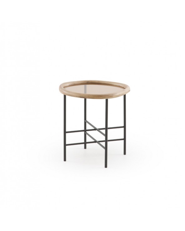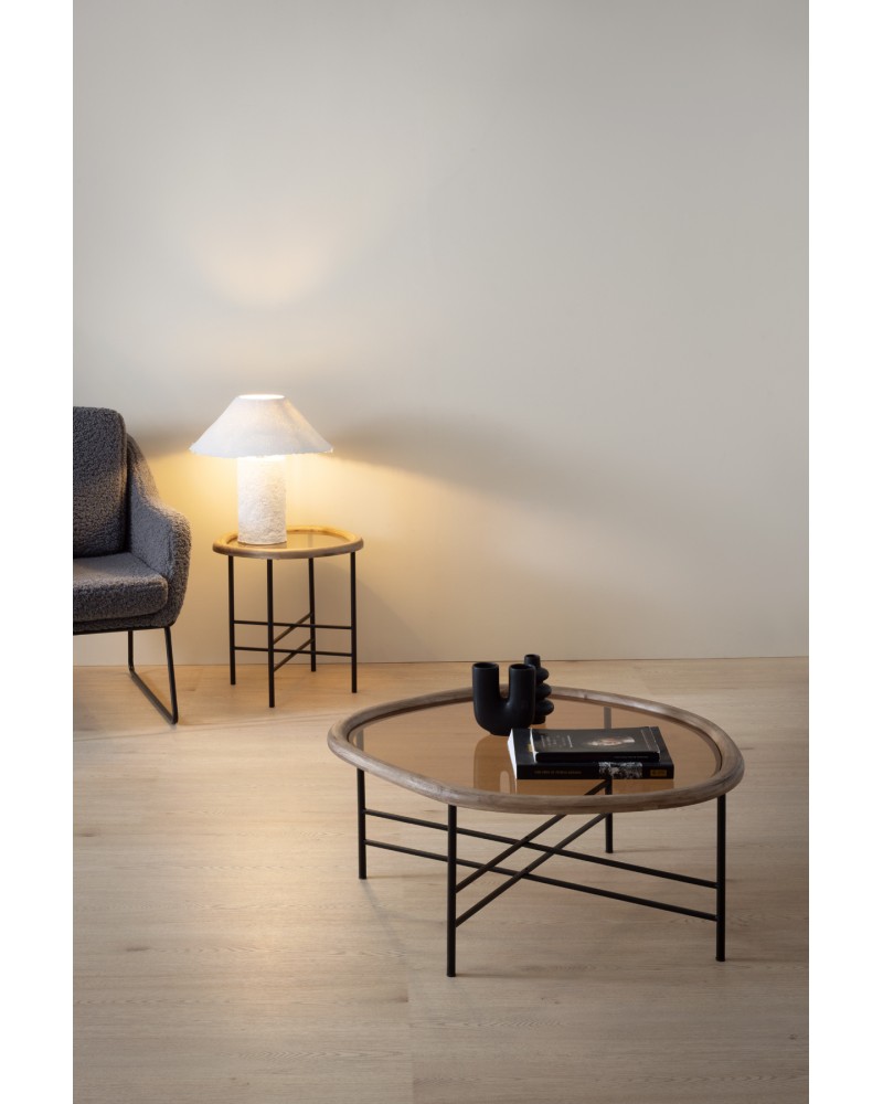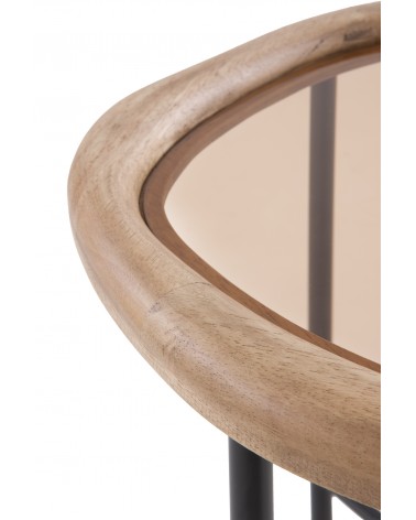 La singularité de son cadre en bois d'hévéa de forme irrégulière définit cette table basse ronde, qui intègre un verre transparent fumé sophistiqué de couleur caramel. Le design est complété par une base en métal de couleur noire, créant une pièce de haute qualité qui apporte distinction et un air contemporain à la maison. Avec des dimensions de 48 cm de longueur, 45 cm de largeur, 50 cm de hauteur et un poids net de 3,00 kg, ce meuble nécessite un montage simple et est idéal pour les environnements recherchant équilibre et esthétique avant-gardiste.