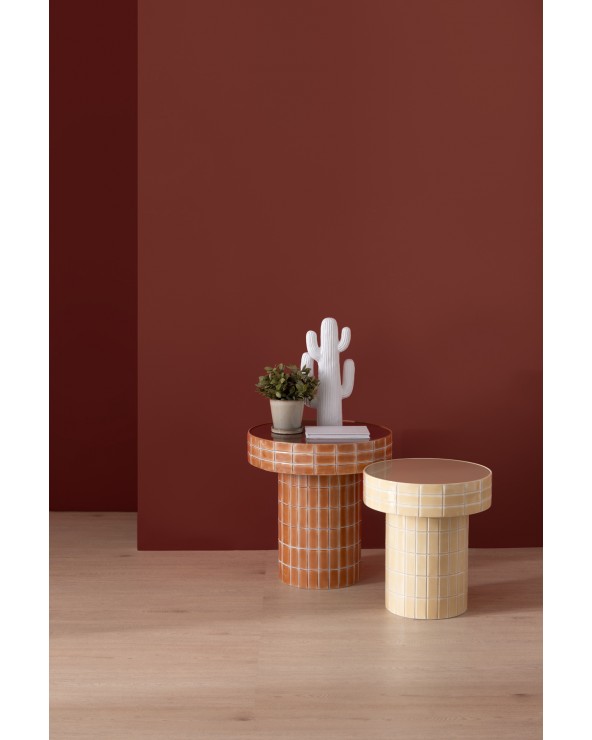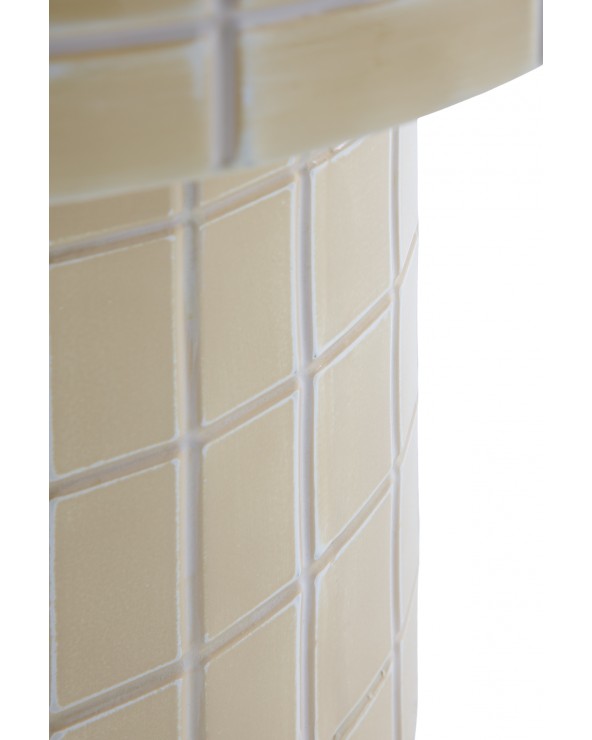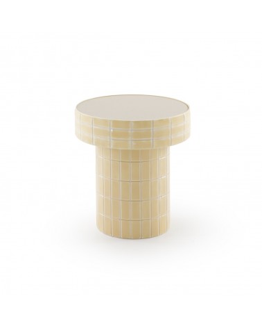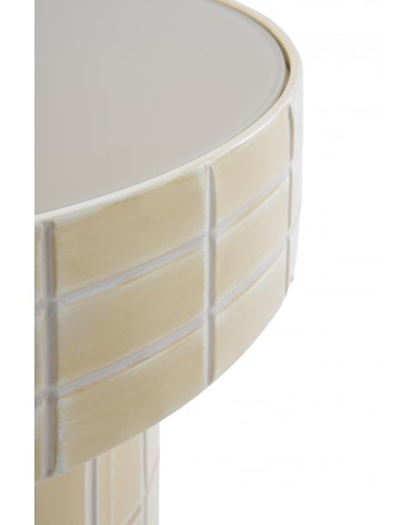 Définie par sa douceur chromatique, cette table d'appoint au design contemporain dispose d'une base métallique cylindrique et d'un plateau en verre couleur vanille au fini brillant. Ses dimensions de 40 cm de diamètre, une hauteur de 45 cm et un poids net de 3,75 kg, en font une pièce fonctionnelle et stylisée, parfaite pour apporter luminosité et élégance à tout coin moderne.