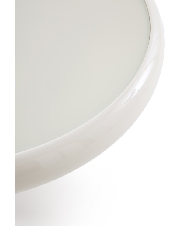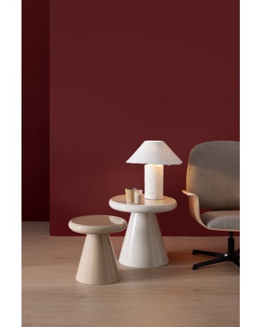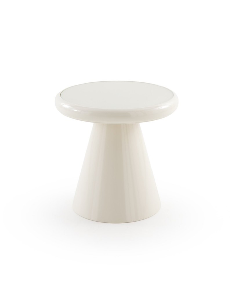 Avec une esthétique équilibrée et raffinée, cette table d'appoint se distingue par sa base métallique de forme conique et son élégant plateau en verre couleur crème au fini brillant. Ses dimensions de 53 cm de diamètre, une hauteur de 50 cm et un poids net de 5,85 kg, en font une pièce au design fonctionnel, idéale pour apporter de la luminosité et un air contemporain à tout espace moderne.