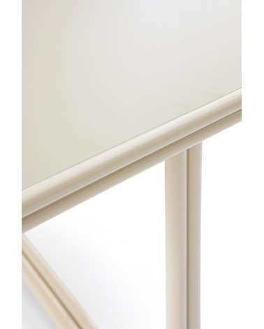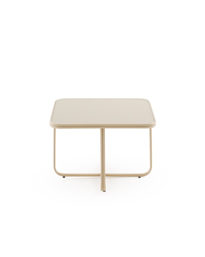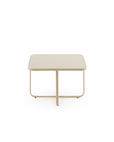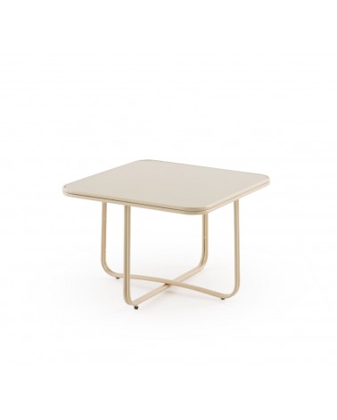 Définie par sa silhouette géométrique aux coins adoucis, cette table d'appoint carrée se distingue par sa base métallique en forme de croix et un élégant plateau en verre de couleur beige. Avec des dimensions de 60x60 cm, une hauteur de 46 cm et un poids net de 6,80 kg, cette pièce au fini brillant est l'option idéale pour apporter modernité et un design équilibré à tout salon contemporain.