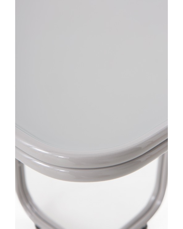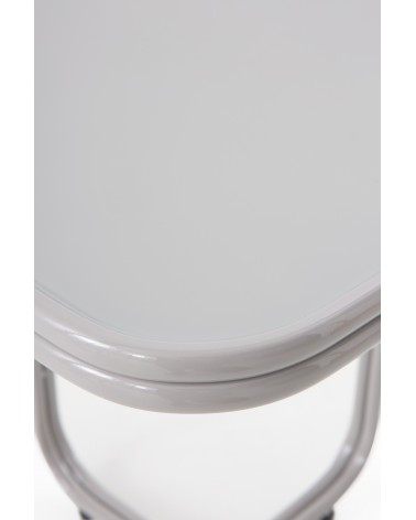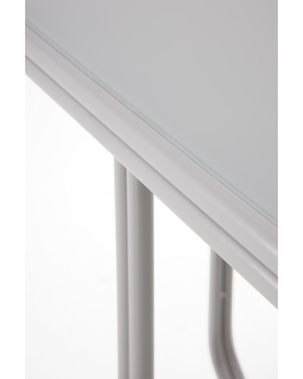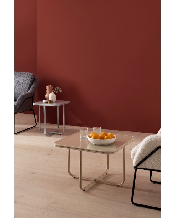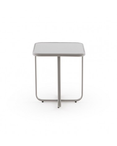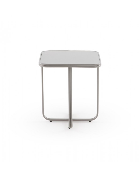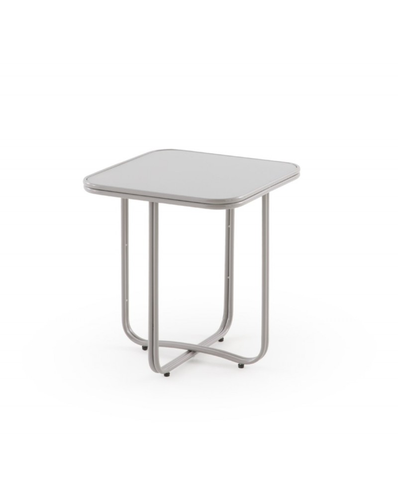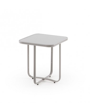 Caractérisée par son design fonctionnel et minimaliste, cette table d'appoint carrée se distingue par ses coins adoucis, une base métallique robuste en forme de croix et un élégant plateau en verre de couleur gris. Avec des dimensions de 45x45 cm, une hauteur de 50 cm et un poids net de 4,75 kg, cette pièce au fini brillant est le complément parfait pour apporter une touche de modernité et de distinction à tout environnement contemporain.