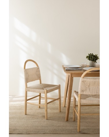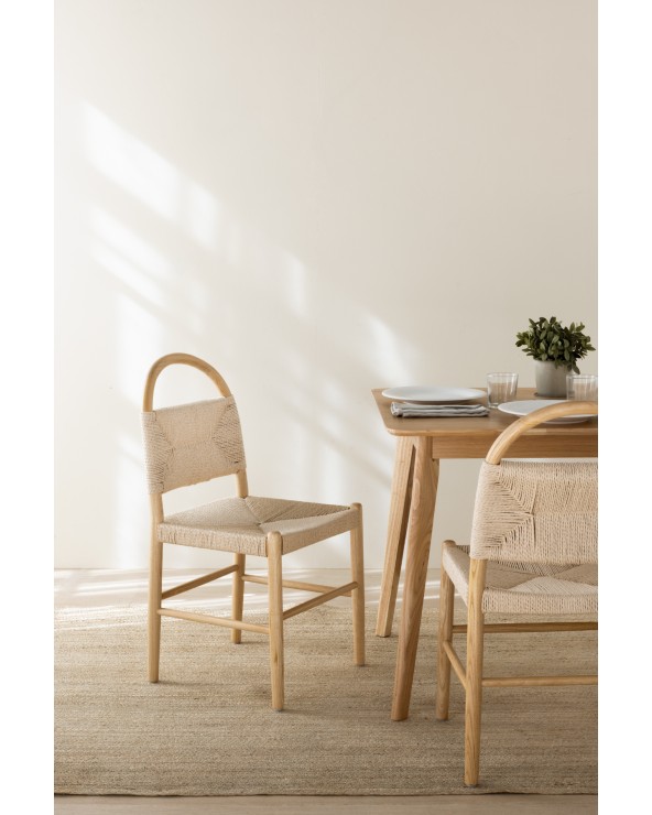 Ce lot exclusif de 4 chaises se distingue par une structure robuste en bois de frêne de haute qualité, dont les formes arrondies et le dossier ergonomique au design courbé —avec une hauteur de 43 cm depuis l'assise— garantissent un confort et un style supérieurs. L'assise, élaborée en corde tressée avec des dimensions de 44 x 45 cm et une hauteur de 45 cm, est complétée par un repose-pieds pratique intégré à 23 cm du sol, offrant une pièce de mobilier fonctionnelle et sophistiquée qui est livrée entièrement montée pour en profiter immédiatement.