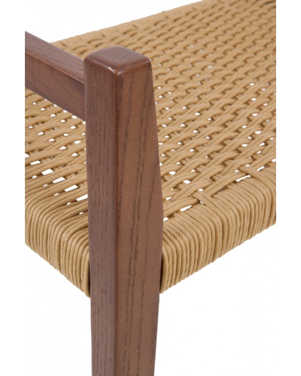Enrichissez votre décoration avec la chaleur et la distinction de cette banquette en frêne finition noyer, une pièce conçue pour captiver par la sobriété de ses lignes carrées. Le contraste visuel est apporté par son assise artisanale, tressée en corde de couleur marron clair à une hauteur de 45 cm, qui, avec ses accoudoirs situés à 60 cm, garantit une expérience d'utilisation confortable et ergonomique. Cette banquette de haute qualité est livrée entièrement montée, offrant une solution décorative sophistiquée et prête à transformer n'importe quel espace grâce à son élégance intemporelle.