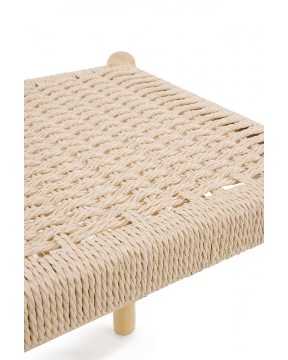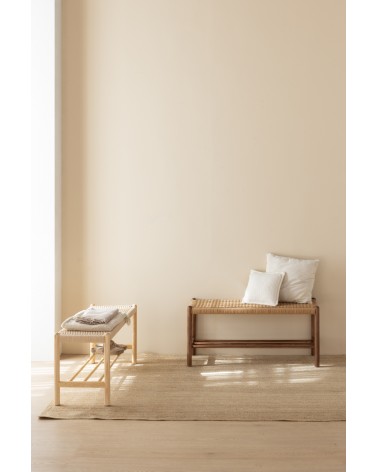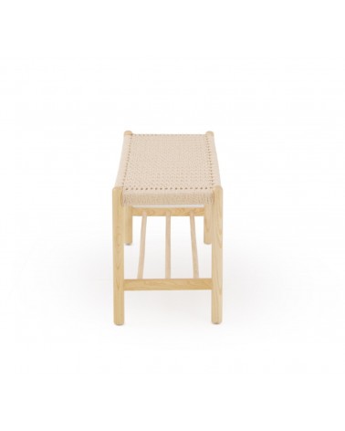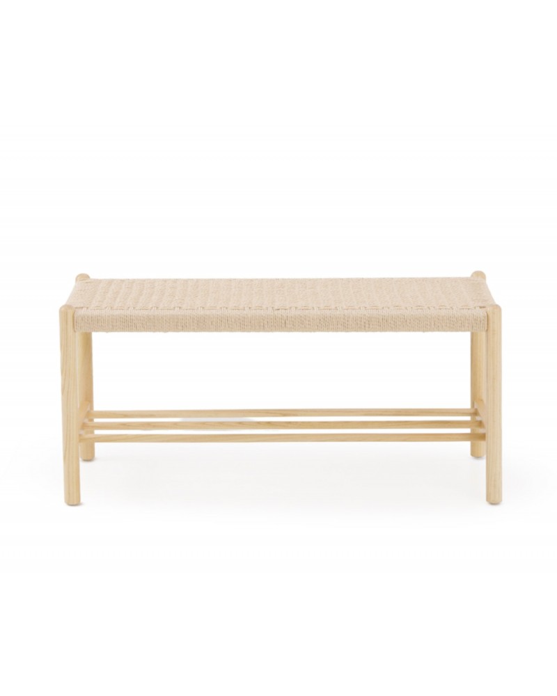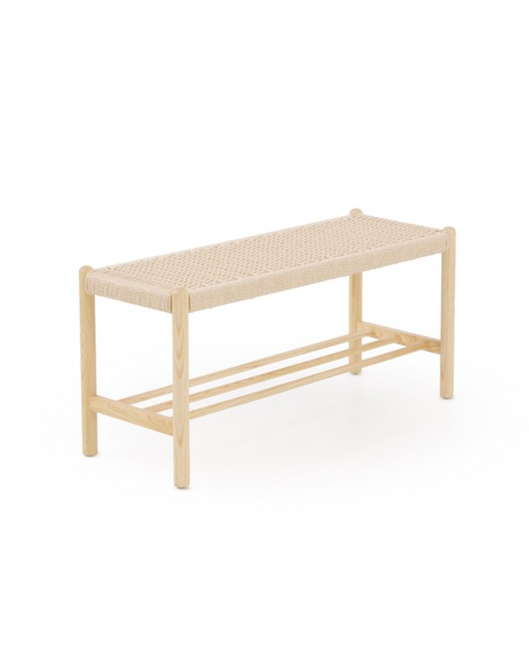 Créez une atmosphère de sérénité et de design organique avec ce banc en bois de frêne, dont la structure aux formes arrondies adoucit visuellement tout espace. La pièce se distingue par son assise artisanale en corde tressée de couleur naturelle à une hauteur de 45 cm, intégrant également un plateau inférieur pratique situé à 12 cm du sol, idéal pour un rangement léger ou une exposition décorative. Livré entièrement monté, ce banc allie parfaitement l'esthétique artisanale et la fonctionnalité moderne, devenant un élément indispensable de votre intérieur.