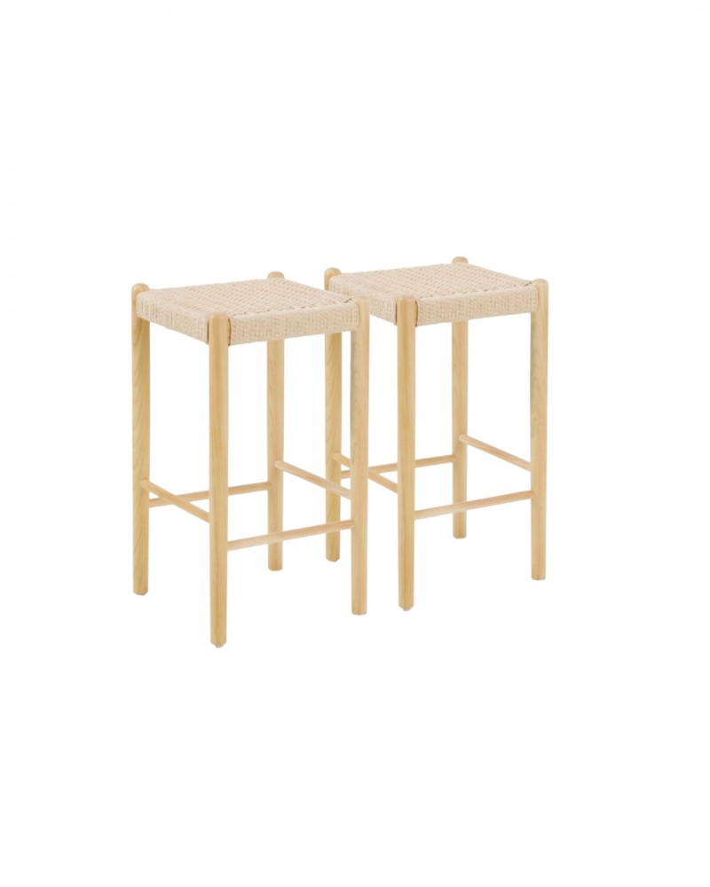 Élevez le style de votre cuisine ou de votre coin bar avec cet ensemble de deux tabourets en frêne naturel, un design qui mise sur la fluidité des lignes arrondies et la noblesse de ses matériaux. Chaque pièce dispose d'une assise tissée artisanalement en corde de ton naturel à une hauteur de 65 cm, offrant un support confortable et esthétique complété par un repose-pieds intégré à 25 cm du sol. Livrés entièrement montés, ces tabourets offrent une mise à jour immédiate et sophistiquée pour votre intérieur, alliant la chaleur du bois clair à une structure ergonomique et durable.