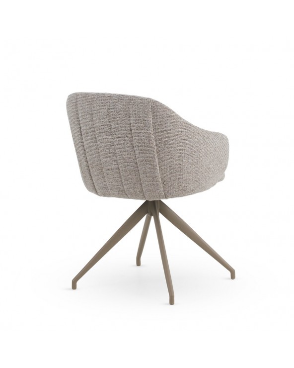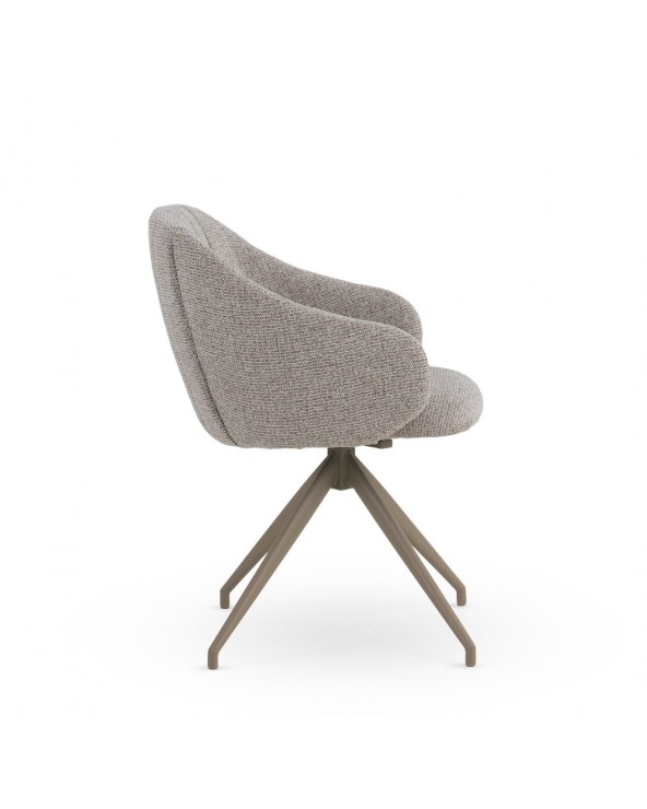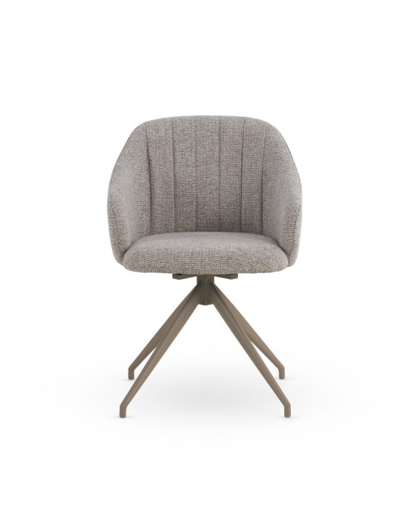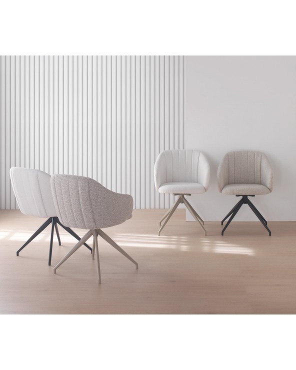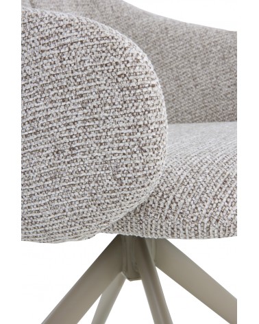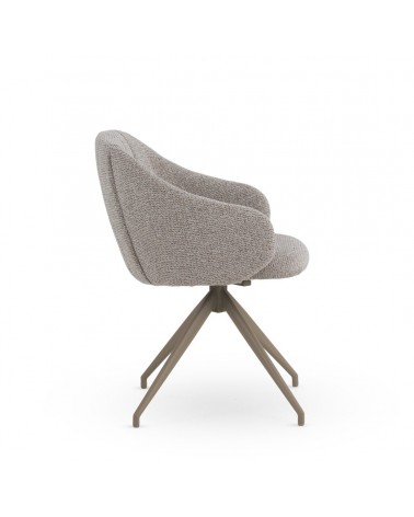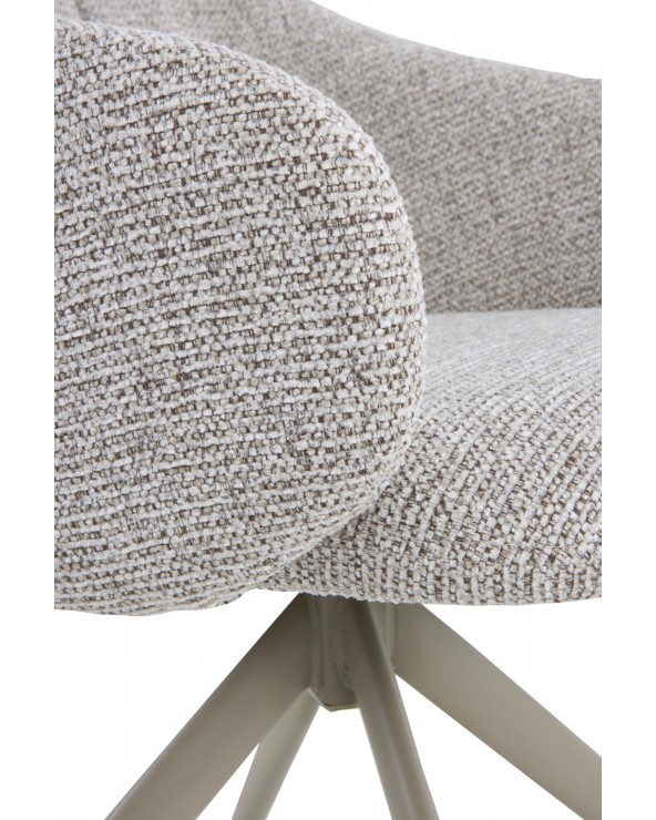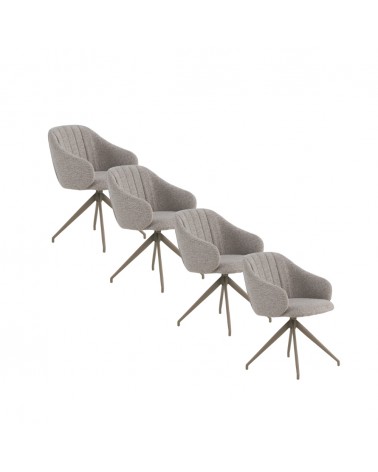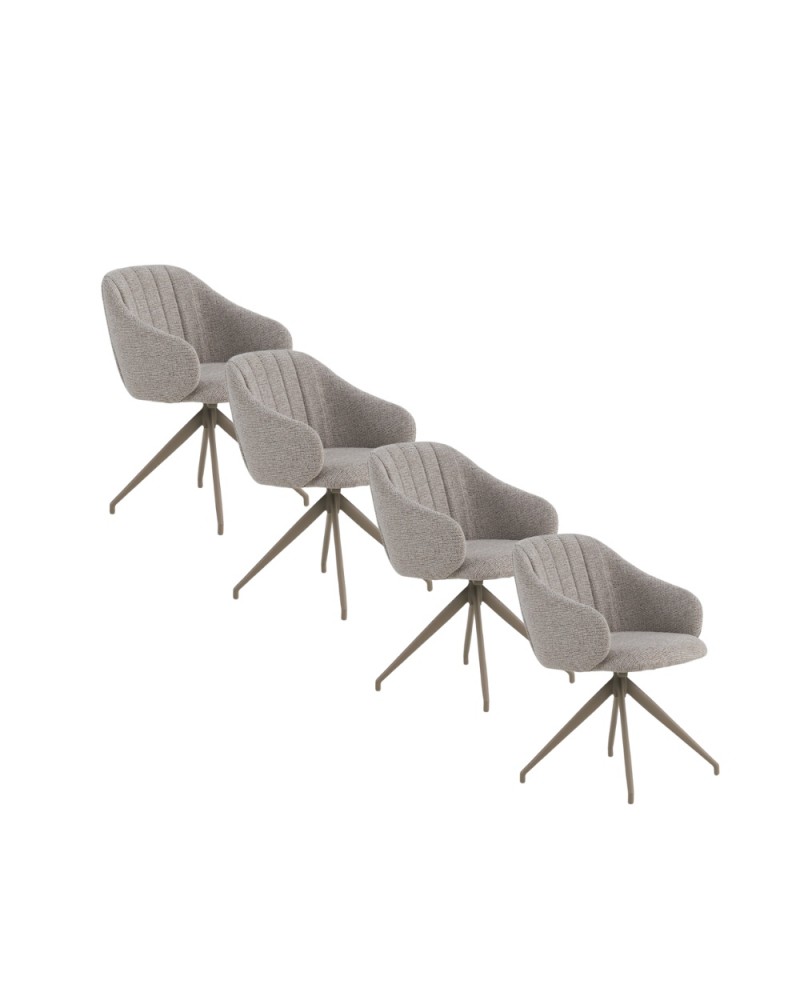 Pacote de 4 cadeirões giratórios de design moderno, estofados em chenille macio de cor castanha clara que confere elegância e conforto a qualquer espaço. Cada cadeirão possui um sistema giratório com retorno automático à sua posição original, oferecendo praticidade e conforto no uso diário. A sua estrutura e pernas de metal na cor cinza garantem estabilidade, resistência e um acabamento sofisticado. Com uma altura de assento de 47 cm, apoios de braços a 62 cm e encosto de 40 cm, estas cadeiras foram concebidas para proporcionar uma postura ergonómica. Além disso, têm um assento com 45 cm de profundidade e 43 cm de largura e incluem uma montagem simples das pernas.