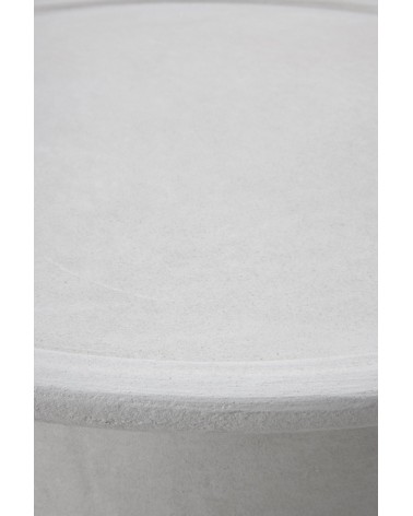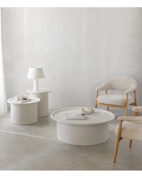 A mesa de centro redonda com 100 cm de diâmetro em cor cimento branco combina um design contemporâneo com funcionalidade prática. Fabricada em poliresina e revestida com microcimento branco, oferece durabilidade, resistência e um acabamento elegante de fácil manutenção. O aro do tampo tem uma espessura de 3 cm, proporcionando leveza visual sem sacrificar a estabilidade. Além disso, a mesa não requer montagem, permitindo uma utilização imediata desde o primeiro momento.